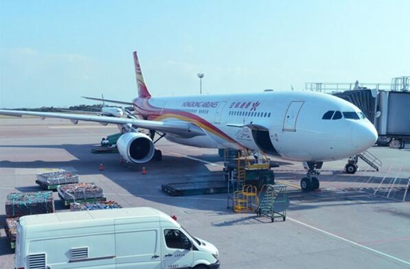 桃園機場的香港航空航班。 圖片來自“中央社”