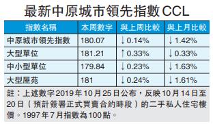 【香港商報網訊】本港二手樓價續跌,中原城市領先指數CCL最新報180.07點,創29周新低。其他數字,中原城市大型屋苑領先指數報181點,創30周新低,按周跌0.24%;中小型單位報179.84點,同為29周新低,按周跌0.23%。三大整體指數齊跌9周,為43周以來首見,分別累跌4.42%、4.93%及4.76%。