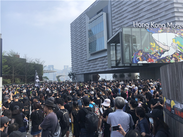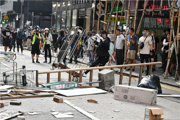 大批黑衣蒙面示威者下午在尖沙嘴梳士巴利道堵路並襲擊警員,警方多次發射催淚彈驅散,示威者隨即四散。北京道有示威者用雜物堵塞馬路,將長梯、站牌及木板等拋出行車線。防暴警察在彌敦道近清真寺及重慶大廈外展示藍旗,警告非法集結示威者離開否則使用武力驅散。