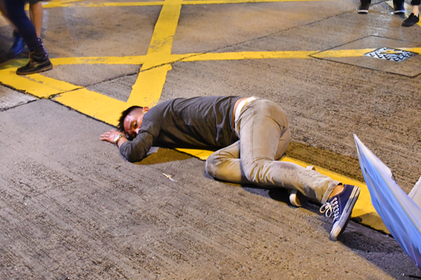 下午4時45分左右,一批黑衣示威者在旺角亞皆老街及洗衣街一帶搬出雜物、小巴站牌、垃圾桶等堵路。一輛警車響號駛至,防暴警車落車迅速驅散,示威者見狀慌忙逃跑。防暴警察初步制服約十多名身穿黑衣人士,並壓倒在行人路。