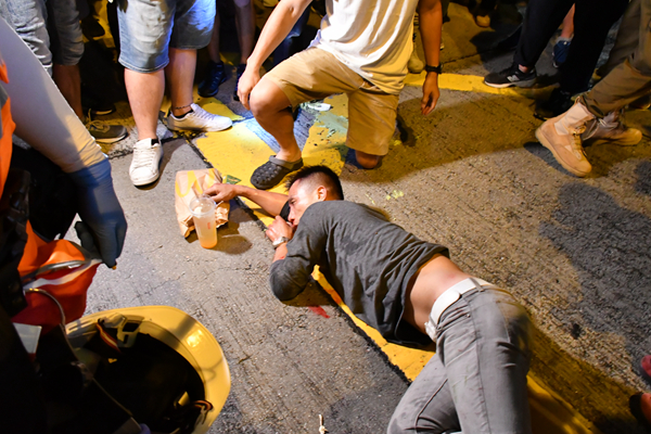 【19“36】有市民被暴徒围殴,路人想上前协助被暴徒赶走。