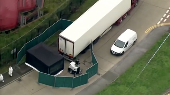 10月25日,英国警方在英格兰东南部埃塞克斯郡一个工业园区内的一辆冷冻集装箱货车里发现39具遗体。截止目前,警方仍在核实遇难者身份。埃塞克斯郡侦缉总督察马丁·帕斯摩尔(Martin Pasmore)在采访中介绍称:“我们还无法给出这辆货车里受害者的国籍信息,但我们能确认,所有受害者都已被找到。”