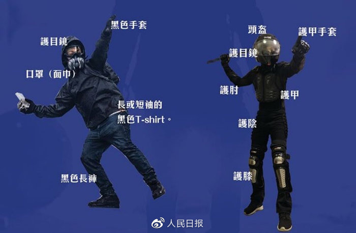看看暴徒使用暴力的策略。今年6月11日,一個新版的《抗爭手冊》在臉書上的“本土民主前線”發布。這本小手冊的主要內容,包括防護裝備簡介、裝備全覽、個人訓練、戰場應對等各個環節的暴力策略。
