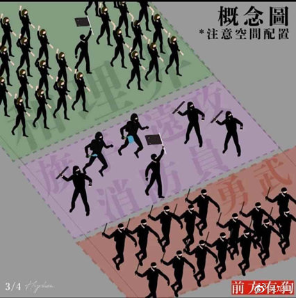 外行看熱鬧,內行看門道。同樣一張暴亂現場的照片,普通人只能看出暴徒們如“人海戰術”烏泱泱地往上沖,內行人卻能一眼分辨出其中的門道:暴徒們就像軍隊一樣編制成大大小小的隊伍,“勇武”在前負責攻擊,“長槍兵”在前、“盾牌兵”掩護、“擲彈兵”發起攻擊;“和理非”在後負責物資補給,並規定“保持一只手臂的距離,確保物資線和逃生線暢通”。其他諸類“兵種”,不一而足;專業性之強,令人驚訝。這是“自發”團體能組織出來的?一些國家的反政府遊擊隊恐怕要哭了:老子的隊伍咋沒這么厲害呢!