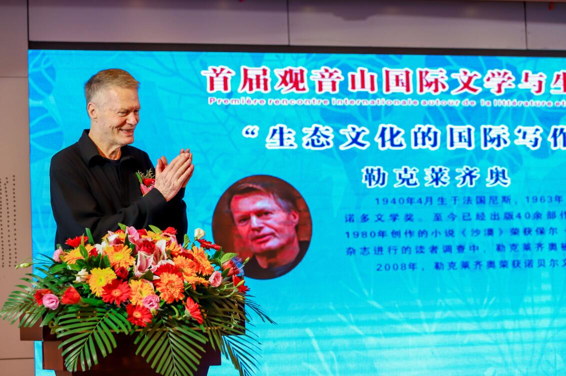 勒克莱齐奥以“生态文化的国际写作”为主题,进行专题演讲,与现场作家一起分享他的文学创作与探险、生态、文明的关系。勒克莱齐奥对中国文学有着浓厚的兴趣,尤其是对中国唐诗、宋词的热爱,他说道,“在中国的唐诗中,让我看到一种非常美妙的未来,我认为在中国出现非常创新的状态,能够将自然科学和人类的想象结合在一起。”克莱齐奥还说到,“观音山这个美丽的地方,让我看到了对自然的尊重,自然当中充满了美,而且动物和植物都在教我们一种新的生活方式。对大自然的热爱和尊重,一直是我们文学创作的重要源泉。”