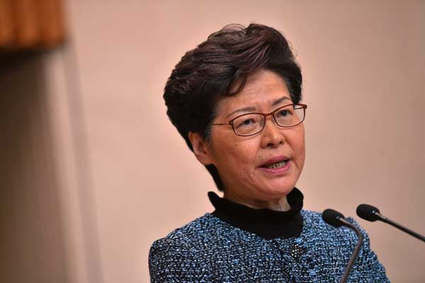 行政長官林鄭月娥昨日出席行政會議前表示,政府堅定支持警隊依法止暴制亂。 中新社