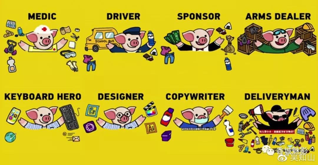 一些推薦物品真的讓人「佩服」這幫黑衣人的「奇技淫巧」。塗在身上讓對手抓不到的「凡士林」、龍蛋(催淚彈)收集器「烤肉夾」、給人加buff的MP藥水「寶礦力」,還有魔法火把「手電筒」:既能用來發信號求救,又能防攝錄搜證,甚至能使「敵人」僵直暈眩,拖延對方行動。「盾牌」也特別能體現黑衣人的「創意」:從游泳浮板、紙箱瓦楞板、披薩烤盤、行李箱到宜家的組合櫃木板,都被他們用來作為對抗警方的工具。