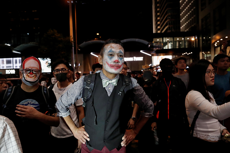 有網民藉萬聖節發起反蒙面法活動,舉行所謂「全民面具日」,昨晚約8時開始於維園聚集後遊行至蘭桂坊,約有300多人參與,在場人士起步後沿告士打道遊行,並指罵在場戒備的警員,警方舉藍旗警告指遊行是違法,要求聚集人士散去,但遊行隊伍未有停留,繼續前行,沿途高叫反修例口號。