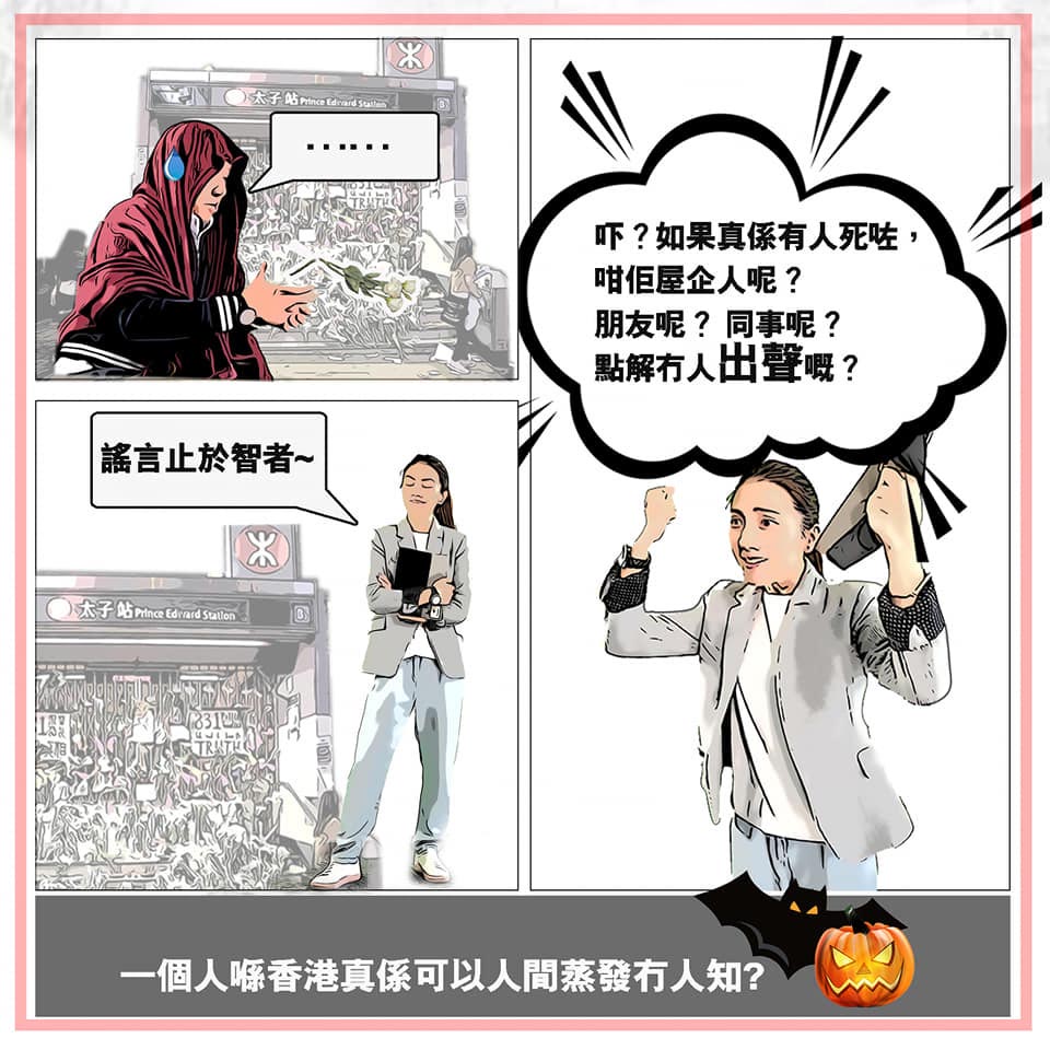 漫畫內容描述女角心寧是一位專業人士,於10月31日萬聖節放工後準備回家,期間在太子站外看見一群市民聚集。一名男子向在場人士聲稱「悼念太子8.31死去嘅英魂」,並要求心寧獻花。心寧隨即反問:「如果真係有人死咗,咁佢屋企人呢?朋友呢?同事呢?」,質疑為何會沒有人發聲。該名男子被質問得啞口無言,心寧最後補上一句「謠言止於智者」。