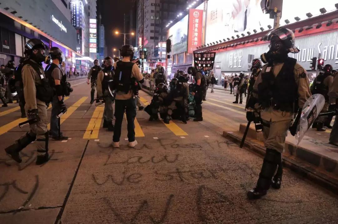 入夜后,警方在旺角施放多枚催泪弹驱散示威者,同时制服及拘捕多人。