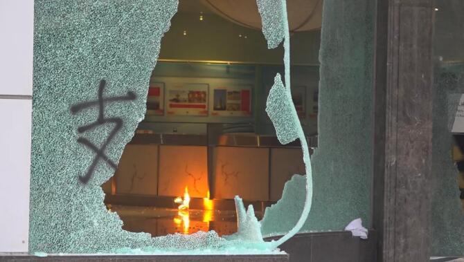 11月2日下午,位于香港的新华社亚太总分社办公大楼遭暴徒打砸破坏。新华社发