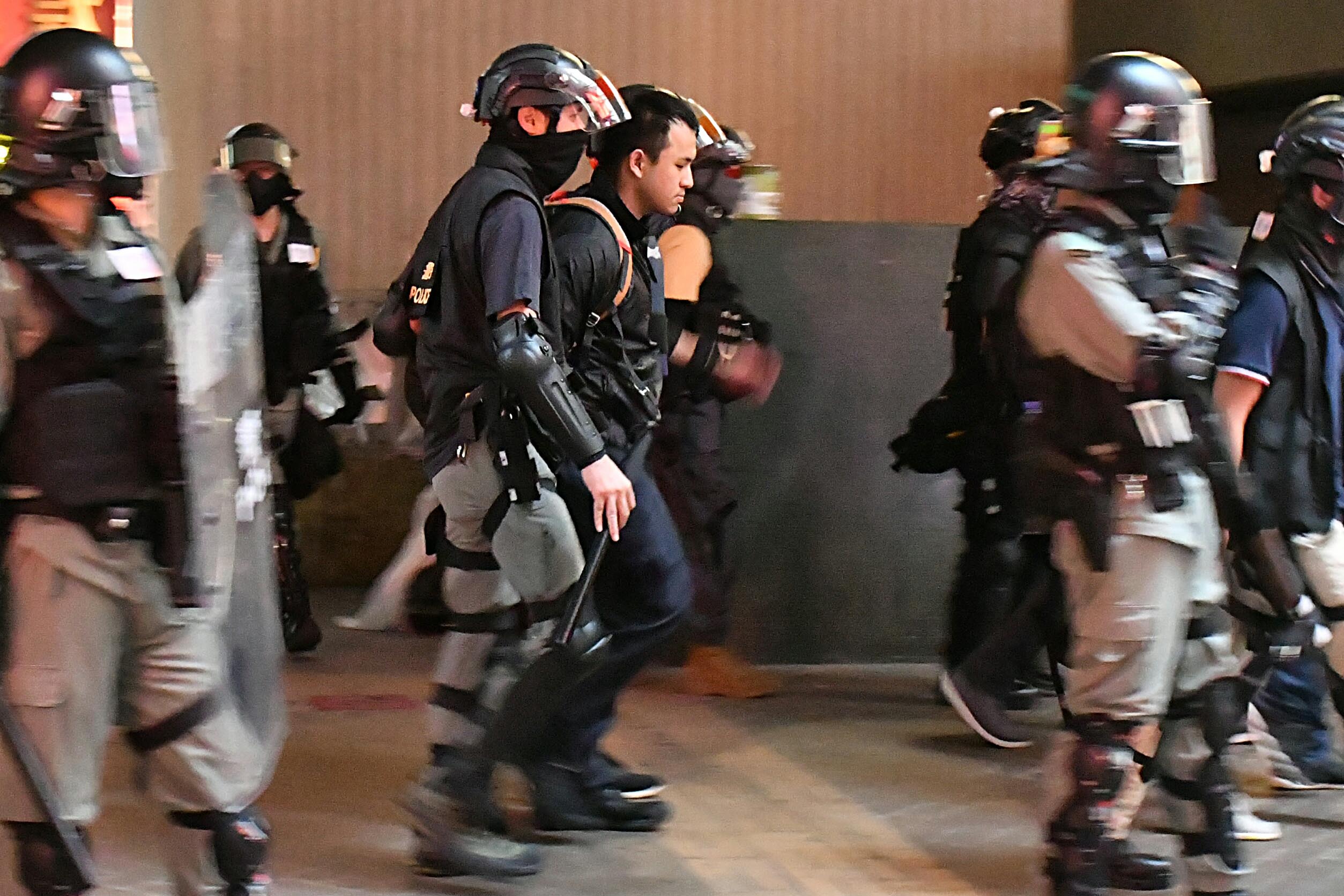 逾百名反對派區議會選舉候選人昨日在維園中央草坪舉辦選舉非法集會。下午約3時,已有近千人聚集,大部分身穿黑衫和戴上口罩,甚至蒙面。同一時間,大批黑衣人在附近道路聚集。警方於下午4時曾進入維園採取驅散行動,發射多枚催淚彈,期間有數名區議會選舉候選人被制服。