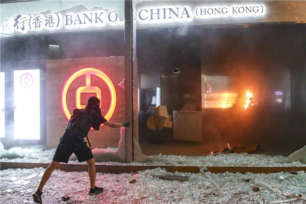 暴力升級,暴徒向中資銀行縱火。