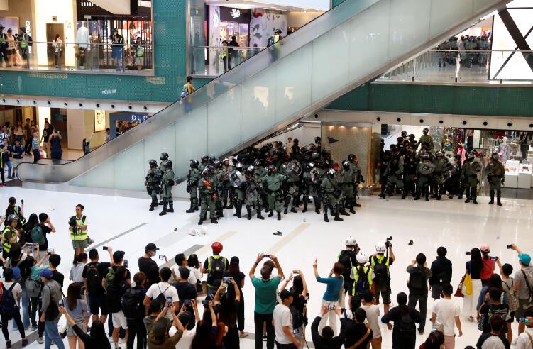 防暴警进入沙田新城市广场,遭高出示威者掟杂物。