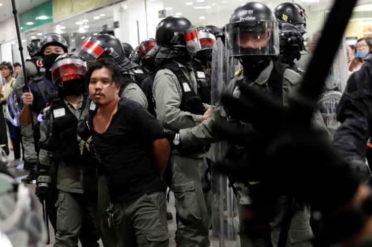 【香港商報網訊】記者周偉立報道:港九在周末連場暴亂後,有網民昨日發起所謂「七區行街」示威,包括到沙田、大埔、屯門和太古城等地。警方派出大批防暴警察在各區戒備,期間爆發多次衝突。在沙田有人將五星旗丟落花圃,敲打港鐵客戶服務中心,破壞入閘機及射水,警員趕到拘捕多人。另在大埔和屯門商場,同有黑衣及蒙面人以流水式「快閃」進行所謂「行街」,小撮人進行零星破壞及縱火,但因人數不多,未有造成嚴重破壞。警員則疲於奔命在各區展開驅散及拘捕行動。