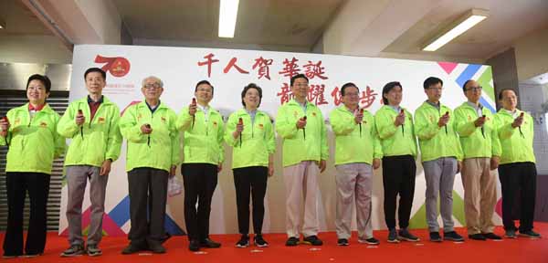 活動起步禮昨早在小西灣培僑小學舉行,外交部駐港特派員公署特派員謝鋒、中聯辦副主任仇鴻、高迎欣等主持起步儀式。超過50家中資企業及商會組織代表,逾1000人參與健步活動。用健康向上的方法慶祝新中國70華誕,同時也期盼香港早日走出困境、重新出發。