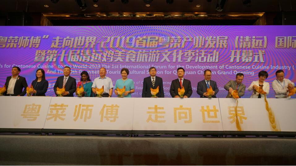 【香港商報网訊】記者余文蓮报道: 以「讓粵菜飄香世界,讓世界愛上清遠」為主題的2019年清遠首屆粵菜師傅大會於今天(11月4日)盛大開幕。來自二十七個國家和地區的粵菜大師齊聚鳳城共享舌尖上的文化盛宴。活動以「粵菜師傅」和馳名世界的「清遠雞」為主角,通過專家論壇、廚藝大賽、美食品嘗、鄉村新聞官推介清遠食材等形式來展示粵菜產業文化和「粵菜師傅」精湛的手藝。