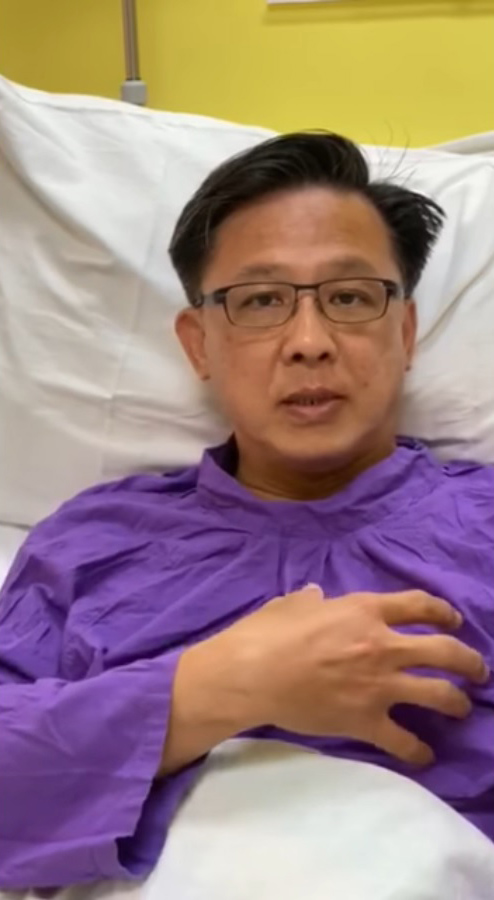 何君堯在網上發放影片,指幸好肋骨卸力沒有刺到心臟。