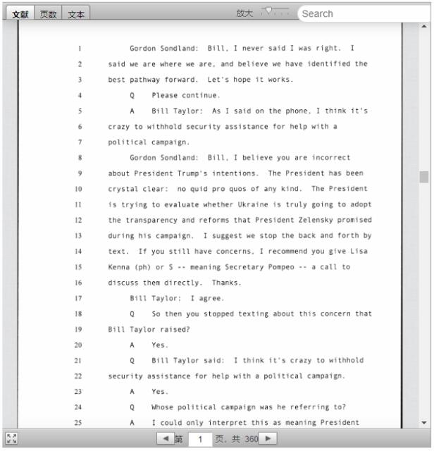 桑德兰证实,他曾告诉一名乌克兰高级官员,除非该国公开承诺进行特朗普总统想要的调查,否则可能不会获得美国的军事援助。桑德兰的证词提供了几个重要的新细节。桑德兰说,到9月初,他已确信军事援助和白宫会谈将以乌克兰致力于进行那些调查为前提。桑德兰的补充证词意义重大,因为这是与特朗普有直接接触的高级人士首次承认,对乌军事援助被当作总统调查其政治对手的筹码。