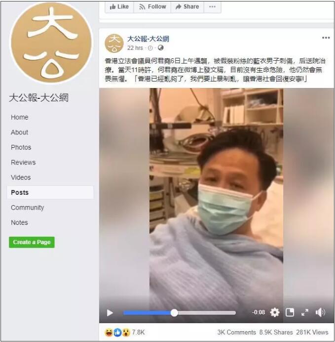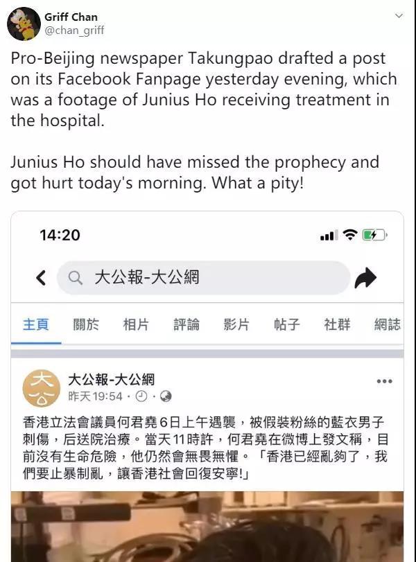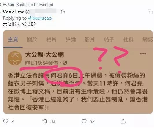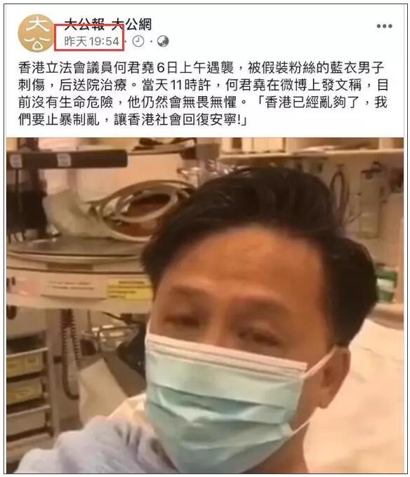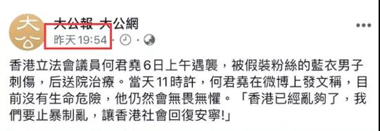 其中最令人震惊的是,香港《大公报》关于何君尧遇刺一事的一则报道,在社交媒体平台上竟遭到了严重的“篡改”,而且这个篡改的手法还颇为“诡异”。