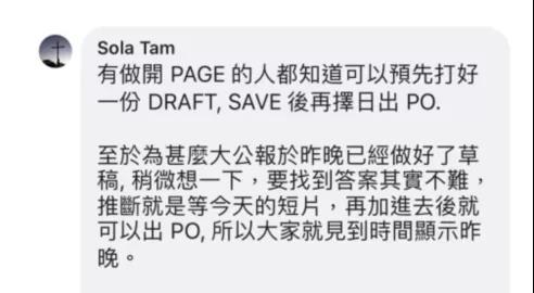 还有坚持认为《大公报》在造假的人提出,该报是“在前一天写好了草稿,然后设置在何君尧遇刺当天定时发布,结果时间才会显示为昨天,导致露馅”。但我们经过核实后发现这种说法同样不属实。定时发布的帖子只会显示其最终发布的日期,而不是“草稿保存日期”。