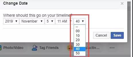 这是因为,脸谱网给用户的这个修改帖子发布时间的功能,最多只允许将时间改到以【以10位倍数】的【整数分钟】(即10、20、30、40、50,如下图所示)。
