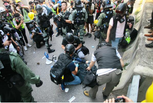7月28日香港上環爆發嚴重衝突,共49人被捕,其中內地學生陳子謀聲稱怕被襲,故穿黃色反光背心“扮記者”,並被搜出一支伸縮棍。
