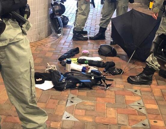 防爆警察在被告身上搜出的一系列装备。图片来自港媒