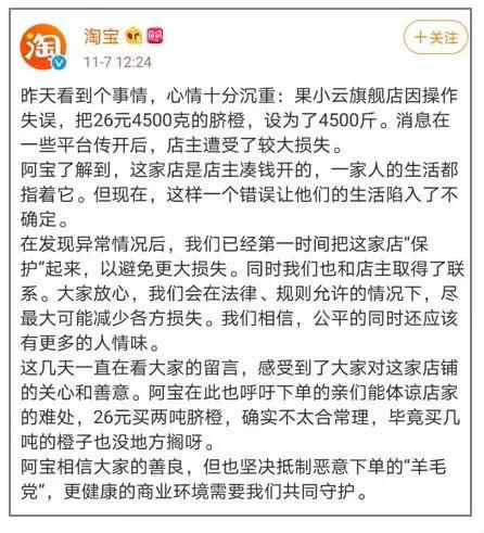 他们咬准店家不会真给每个人发4500斤橙子 ,那么按照淘宝的规则,这就属于欺诈,只要大家都去投诉,便大概率可以获得保证金。