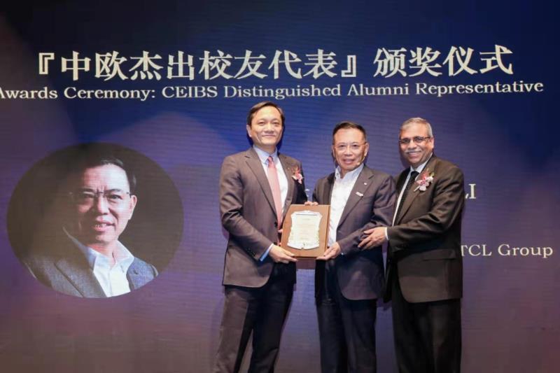 演讲秀结束后,迪帕克•杰恩教授 (Jain, Dipak Chand)和丁远教授共同为李东生校友颁发了“中欧杰出校友奖”。