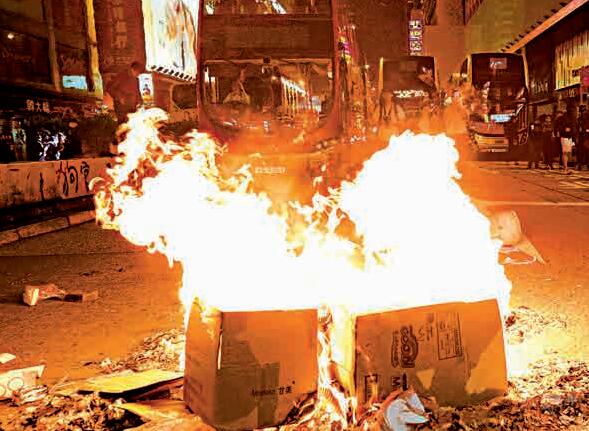 【香港商报网讯】香港科技大學22歲學生周梓樂日前在將軍澳尚德邨墮樓重傷,延至昨晨不幸離世。煽暴派伺機「消費死者」,以悼念為借口,策動昨晚在全港各區借悼念活動,挑撥仇恨。大批黑衣暴徒昨日先破壞科大校長住所、搗破校園內的食肆、銀行,晚上更在各區堵路、向警員以至港鐵站擲汽油彈、放火燒電箱引發爆炸、圍攻記者甚至火燒荃灣裁判法院。在油麻地,黑衣魔瘋狂襲警,10多名反黑組探員被60多名黑衣魔圍攻掟磚頭,警員在生命受威脅下被迫向天鳴槍示警。防暴警深夜出動施放催淚彈等驅散和清除路障,並拘捕多人。