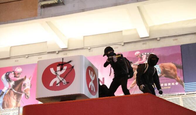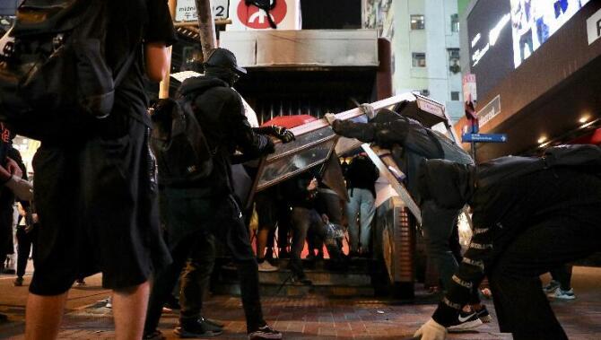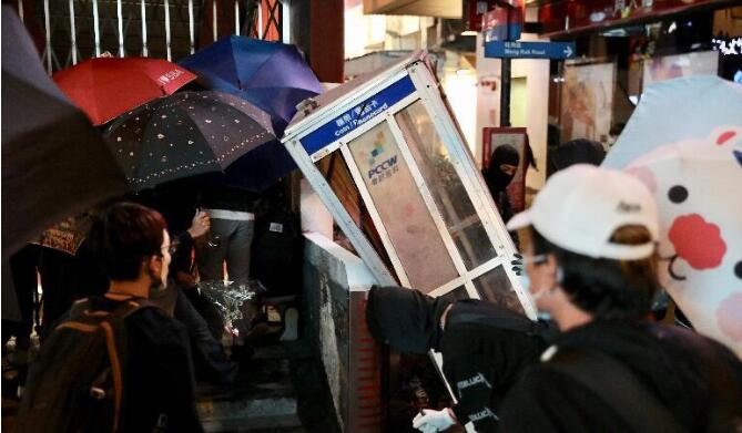 暴徒毁坏电话亭和地铁站。图片来源:香港文汇网