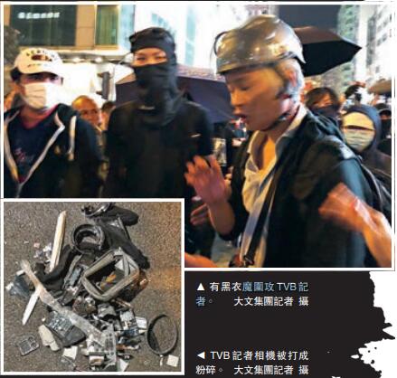 另外,TVB的攝影記者在該區採訪期間,遭暴徒襲擊受傷,攝影器材更遭「肢解」。