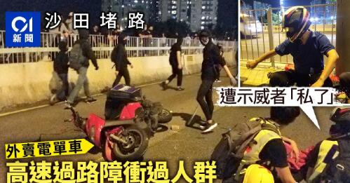 同一時間,大批蒙面暴徒亦在沙田乙明邨對開來回行車線,用雪糕筒及鐵馬堵路。有電單車外賣員其後駛過路障,急於到第一城送外賣時,卻惹起十數名暴徒不滿。不但將電單車攔截,而且更將外賣員推跌下車。其中更有暴徒大罵:「邊個畀你駛過嚟?你睇唔到有路障咩?依家你嚇親我啲手足點計先?」該名外賣員尚未來得及解釋,數十名暴徒已經一擁而上,將其拖下車行「私刑」,將他打至倒地不起,其電單車尾箱亦被木棍擊毀。