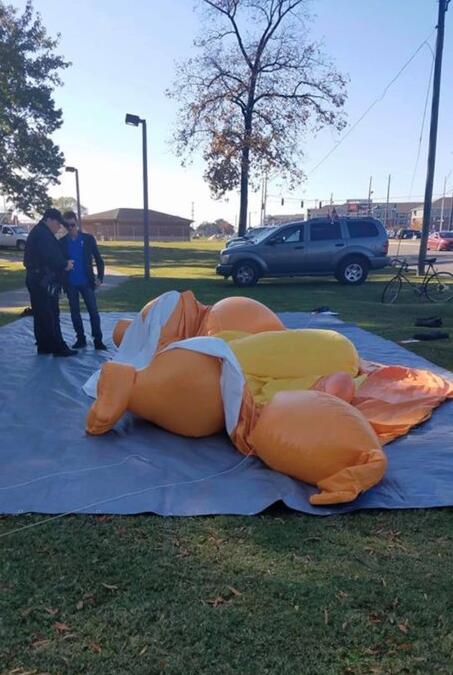 不过,一名叫做霍伊特·赫钦森(Hoyt Hutchinson)的当地居民对此表示不满,并用刀捅破了这一气球。最终他被控一级刑事破坏重罪,并被押送至当地的一所监狱。而在缴纳保释金以后,赫钦森已被释放。