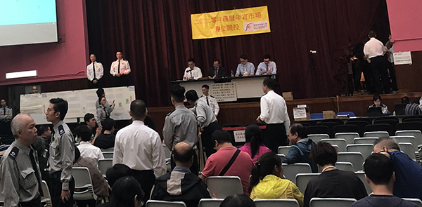 濕貨攤位方面,上午競投的60個攤檔中有37個沒有人出價而收回,其後大會再將收回的攤檔重新競投,有9個以底價被投得,最終仍有28個需要收回。