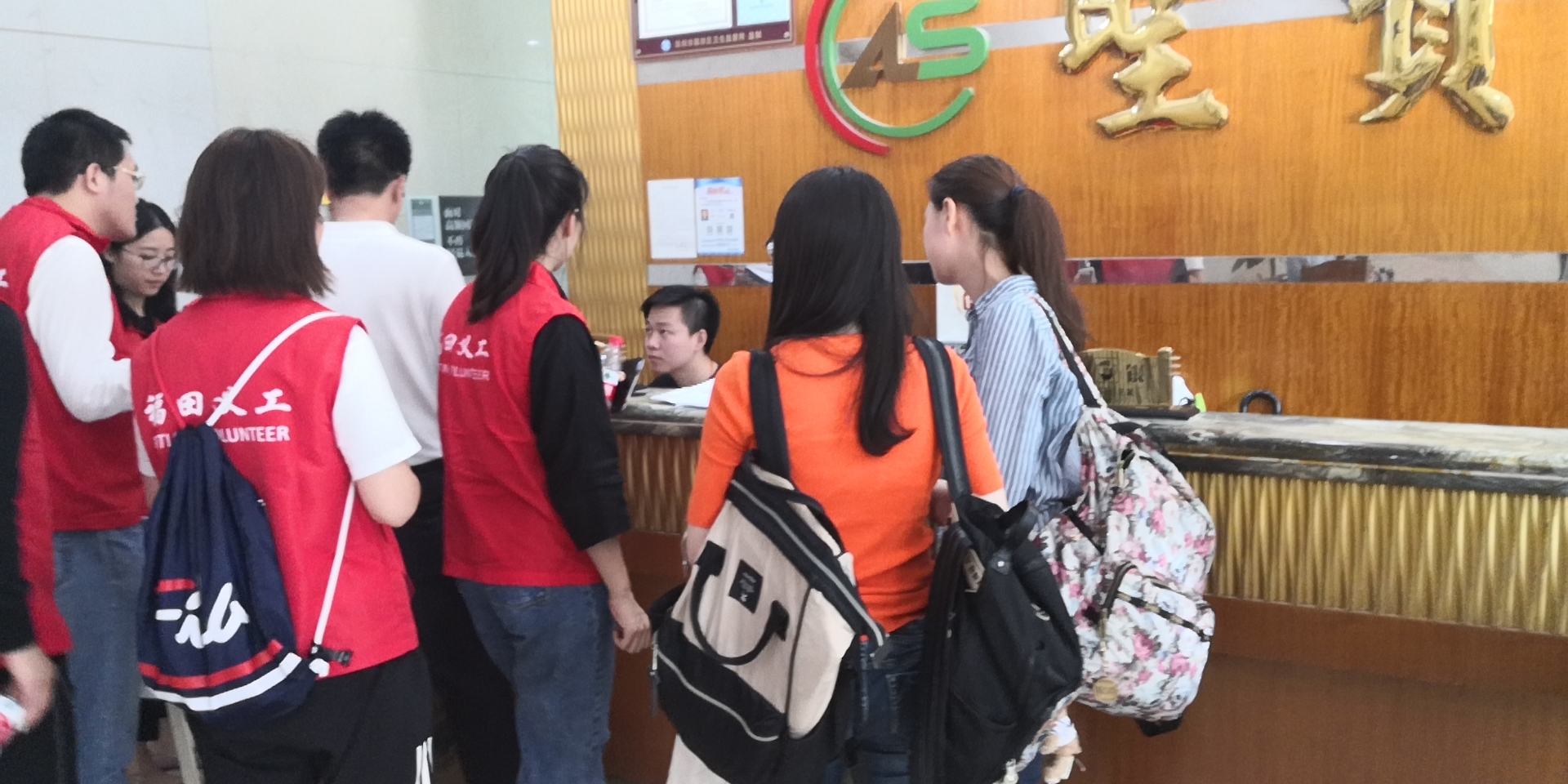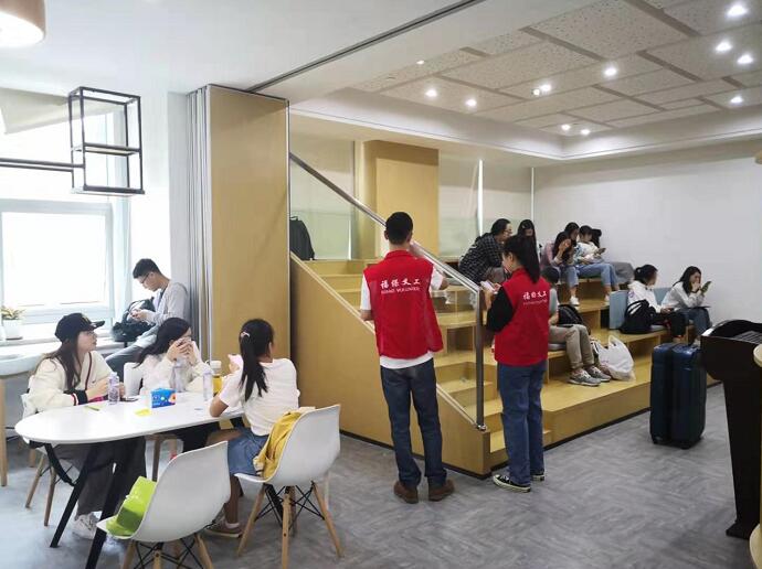 在福田区福保街道石厦社区党群服务中心等待分配住宿的同学。
