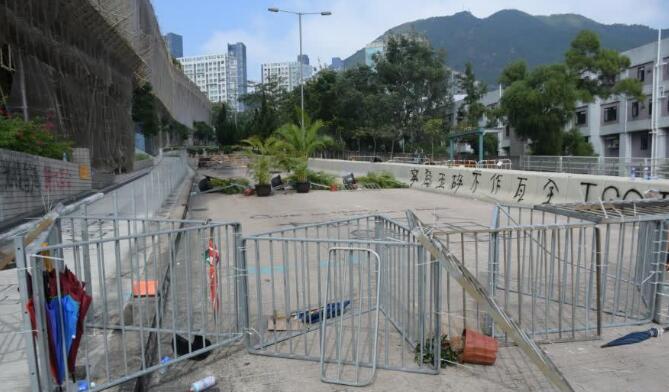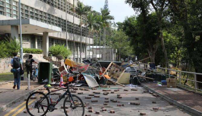 通往香港城市大學的路上被設滿路障。大公文匯全媒體