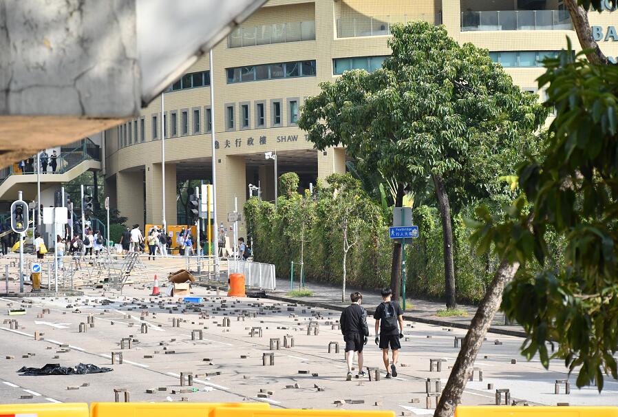 香港浸會大學附近有暴徒掘磚頭設置路障。大公文匯全媒體