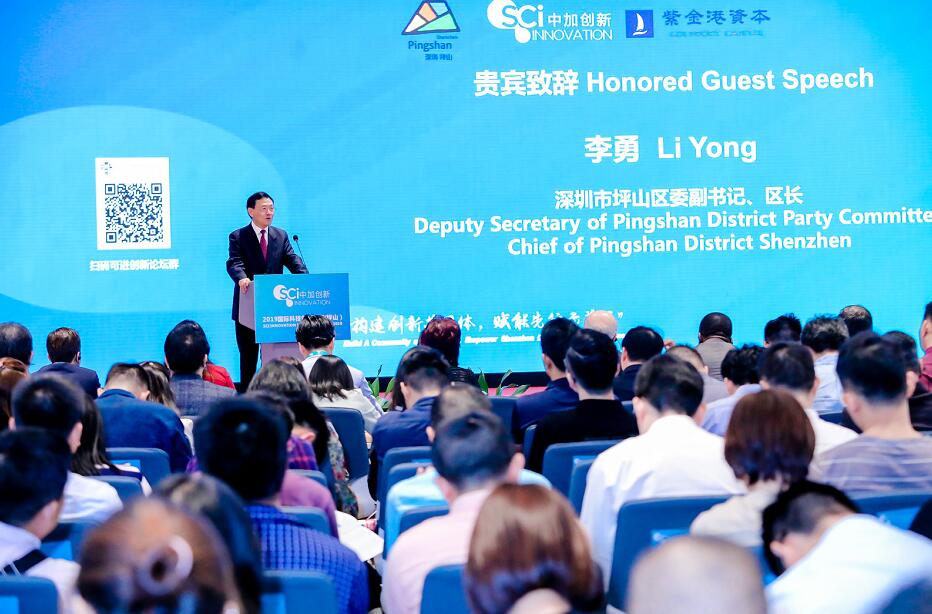 【香港商報訊】記者焦家志報道:11月15日,由深圳市坪山區人民政府作為指導單位,Sci中加國際創新中心、深圳市紫金港資本管理有限公司及八家深圳市海外創新中心聯合主辦,深圳市加中創新中心有限公司承辦的「2019年Sci國際科技創新投資論壇(坪山)暨Sci中加國際創新(坪山)中心揭牌儀式」在坪山創新廣場成功舉行。坪山區委副書記、區長李勇,加拿大深圳社團聯合總會主席齊佳,加拿大多倫多市第一副市長Denzil Minnan-Wong黃旻南、加拿大創新之父莫偉力院士等加拿大多倫多代表共同出席了本次論壇。與此同時,八家深圳市海外創新中心的負責人、多倫多市科技企業代表團、深圳知名創投機構、坪山區生物醫藥行業企業代表等300餘位嘉賓參加了本次活動。