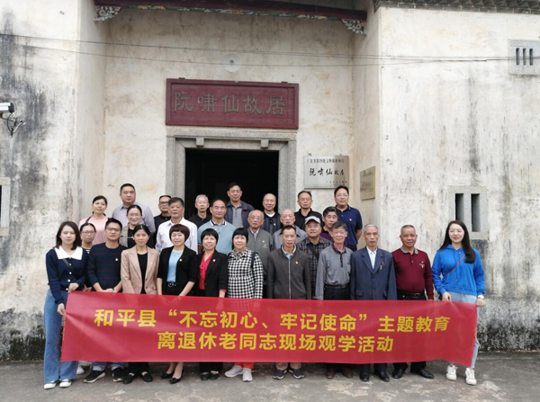 10月31日上午,和平縣組織全縣副處以上離退休老領導幹部、各單位離退休黨支部書記到東源縣阮嘯仙故居、阮嘯仙紀念館,通過現場觀學、重溫入黨誓詞的形式,學習革命精神,堅定理想信念,強化初心使命,牢記黨員義務,自覺參與主題教育,在社會上積極為黨發聲,在群眾中樹立良好的黨員幹部形象。當天下午,在縣老幹部活動中心召開縣離退休黨工委“不忘初心、牢記使命”主題教育工作推進會,在會上發放了“不忘初心、牢記使命”主題教育學習資料,學習了習近平關於“不忘初心、牢記使命”論述摘編第一專題和主題教育應知應會手冊,引導各離退休黨支部書記要緊跟單位黨總支“不忘初心、牢記使命”主題教育進程的步伐,按照主題教育在全黨范圍內開展的要求,結合離退休幹部黨建工作實際和老黨員特點,通過集中學習、送學上門、寄送資料、信息傳達的形式,讓每一位老黨員都能融入主題教育全過程,進一步夯實離退休老黨員主題教育工作。