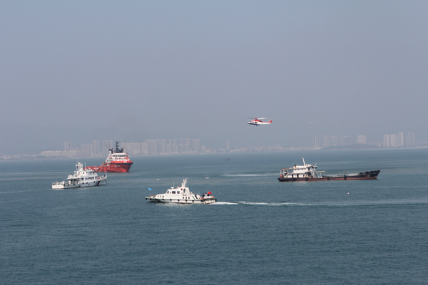 此次演習模擬一艘危險化學品船舶與一艘散貨船相撞後多名船員落水,船舶失控,危化品船出現破倉溢油等情況。接報險情後,惠州海事部門立即協調多艘船舶及直升機進行搜救,並聯合海上多種應急救援力量合力救助。救助內容包括事故接警響應、人員搜尋救助、海上溢油圍控、溢油汙染清除等四個應急處置科目。記者從演習現場看到,根據惠州港水上通航管理特點及應急搜救實際,整場演習以貼近實戰化的情景設置及緊迫的時間要求,首次真實模擬了油船與散貨船的碰撞事故,演練了人命救助、溢油處置等海上險情處置項目,並且在演習中引進了無人機等新型裝備,實現了應急搜救“海陸空”三級聯動。