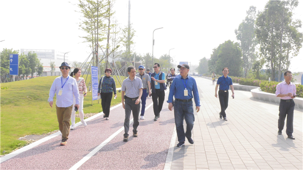 作家们到访江门人才岛的环岛公园示范段项目的首个景观工程—柳桥唤渡