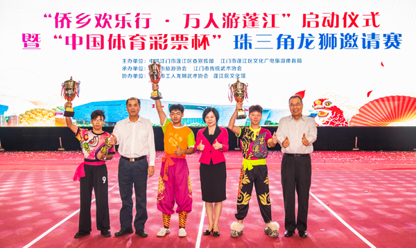 【香港商報網訊】記者盛芳齡、林麗青報道:11月16日,2019中國僑都(江門)華僑華人嘉年華蓬江分會場之“僑鄉歡樂行 · 萬人遊蓬江”啟動儀式暨“體育彩票杯”珠三角龍獅邀請賽在江門市蓬江區舉行。本次活動由江門市蓬江區委宣傳部、江門市蓬江區文化廣電旅遊體育局主辦。活動持續至12月中旬,將全面立體地向各位展示蓬江形象,宣傳蓬江文化,推介蓬江旅遊。