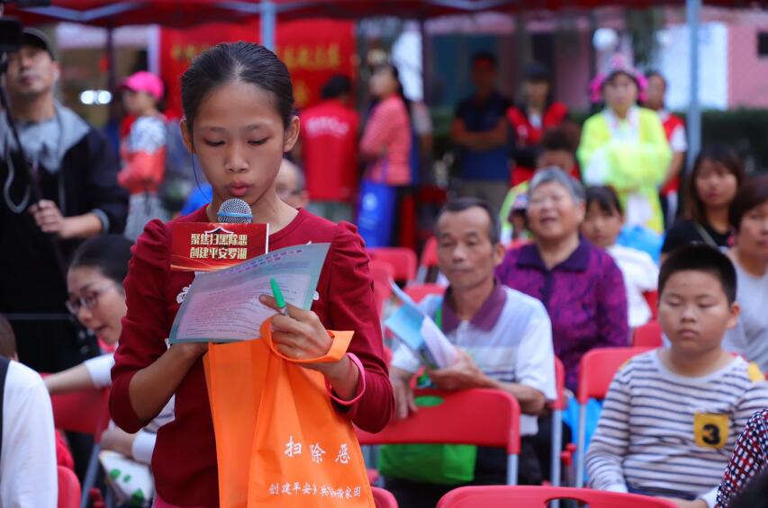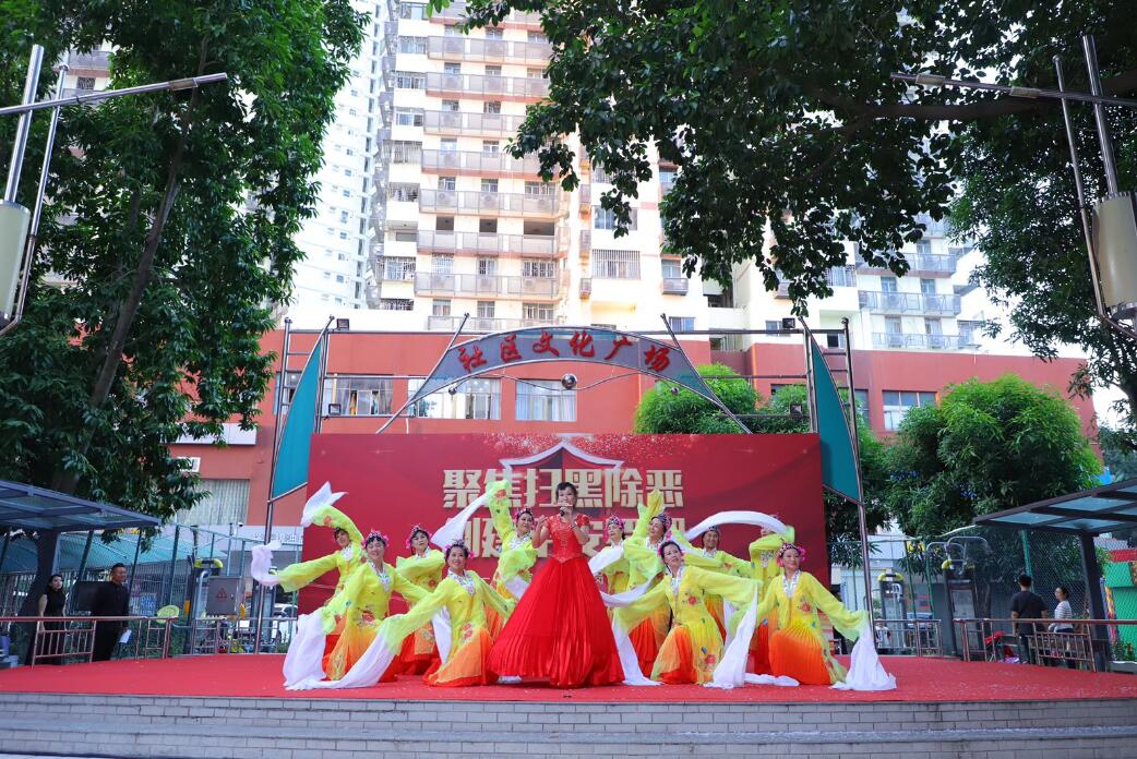 在數百名市民群眾的自發參與和見證下,宣傳活動正式開始。活動圍繞「聚焦掃黑除惡 共創平安羅湖」主旋律,通過轄區居民自發組織的平安宣傳文藝隊伍表演了自創作品,全面的詮釋了掃黑除惡人人參與,平安羅湖你我共建的社會精神風貌。其中,舞蹈《茉莉花》、合唱《歌唱祖國》、京劇《中國脊樑》等節目深受群眾喜愛。演出期間還穿插了掃黑除惡有獎知識問答互動遊戲,吸引了廣大市民群眾積極參與,現場氣氛十分熱烈。