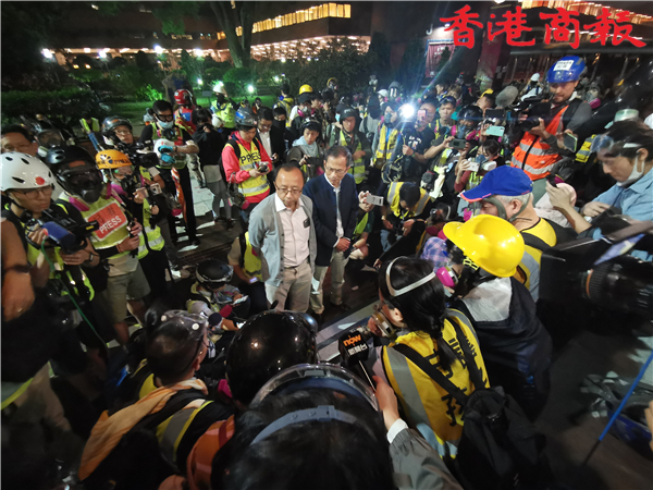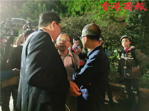 【香港商報網訊】前立法會主席曾鈺成,與港大法律學院首席講師張達明、前監警會成員鄭承隆等,深夜進入理大校園。曾鈺成等勸說在場示威者和平離開校園,並表示可以確保示威者的安全。另外,有中學校長表示,警方同意對理工大學校內18歲以下學生不做逮捕,只記錄身份信息,之後可由校長帶走。
