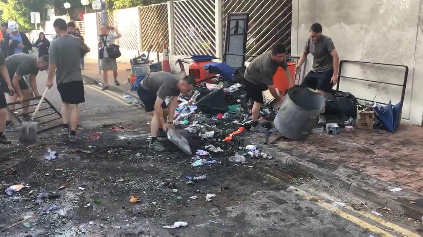 16日,在九龍塘軍營的駐軍自發到營外,拆除部分路障和清理醫院附近道路的磚塊和雜物,令馬路回復通暢,途經醫院的道路無阻,令醫生可恢復到醫院應診,傷病者可如常到醫院求診和覆診,病人家屬到醫院也不用再繞道,駐軍的義助,值得一讚,令人鼓舞。