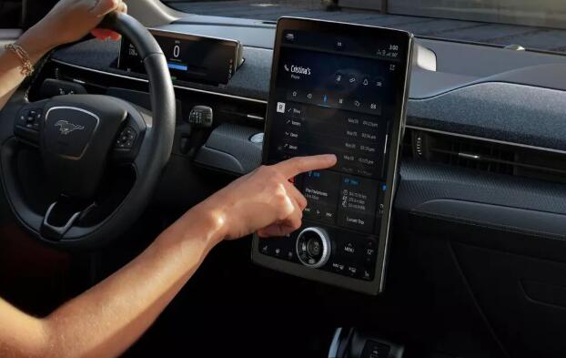 Mach-E采用了简约时尚的内饰设计风格,除了全液晶仪表盘外,中控台部分采用了更大尺寸的竖置液晶屏,并设置了旋钮式多媒体控制机构,也将集成车内绝大部分功能操作。