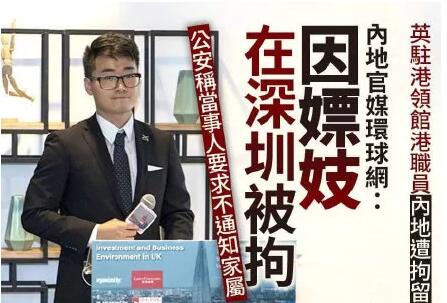 根据此前深圳警方的通报,郑文杰是因为嫖娼被处以行政拘留15天。(具体情况详见:英驻港领馆雇员内地被抓,干了什么不光彩的事?)