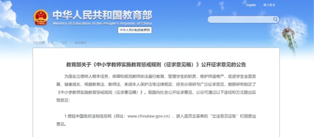 教育部官網11月22日發布《中小學教師實施教育懲戒規則(征求意見稿)》